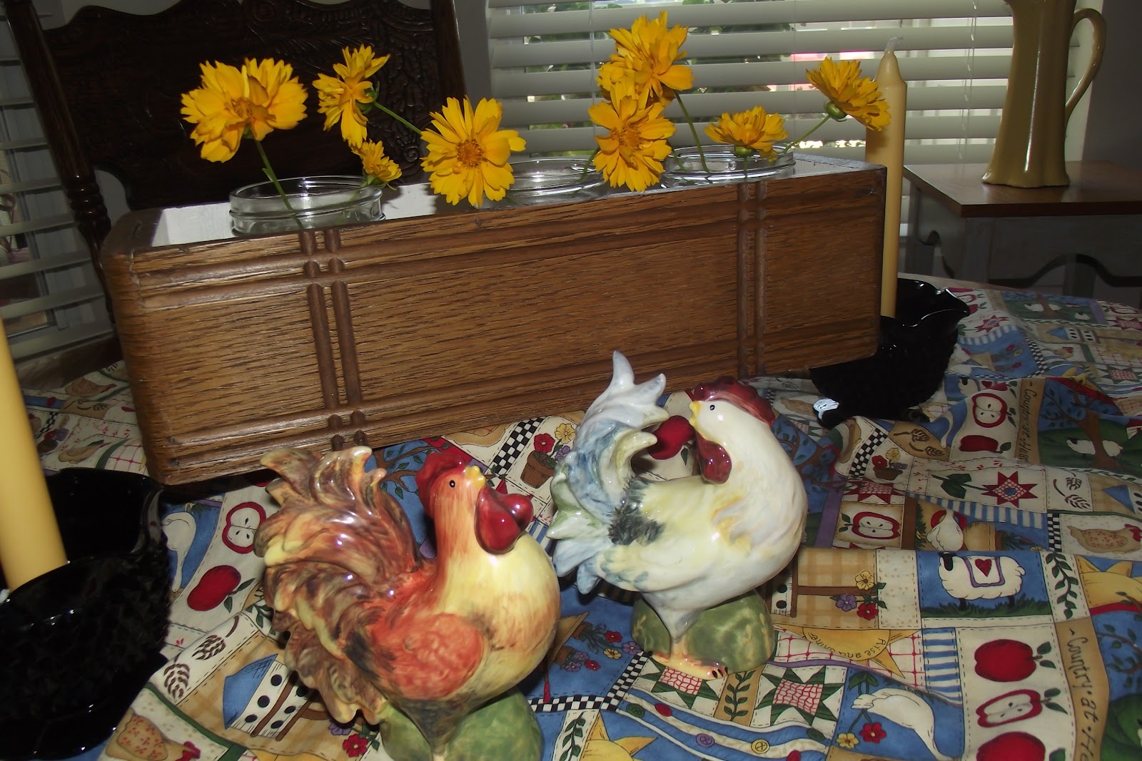 Hi Karie! OH, what beautiful flowers! Now there you have a Roo and Chick that could come to my party.